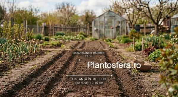 - Apoi am plantat bulbii cu rădăcina în jos și am astupat șanțurile.