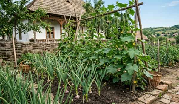 Făinarea la castraveții din solar este o mare problemă, iar mana la cei de afară. Soluția nu este să folosești chimicale care se vor duce în fructe, ci să plantezi usturoi. Sulful din usturoi acționează ca un antifungic natural și respinge ciupercile, împiedicându-le să se lipească de frunze.
