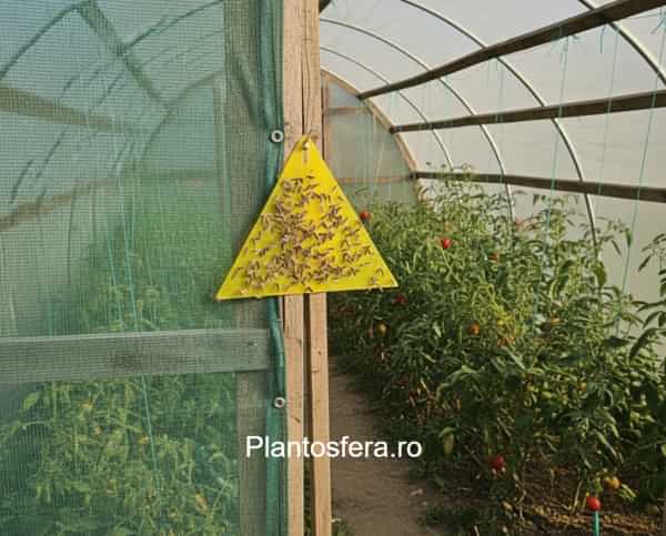 Capcană cu feromoni instalată în solar pentru monitorizarea prezenței tutei absolute și detectarea timpurie a atacului.