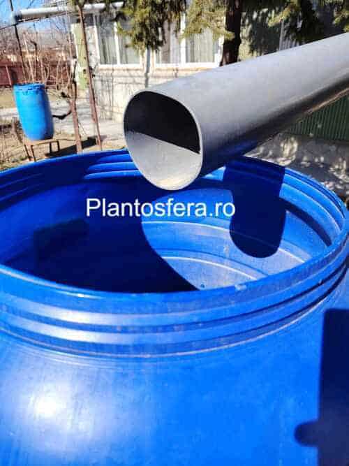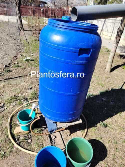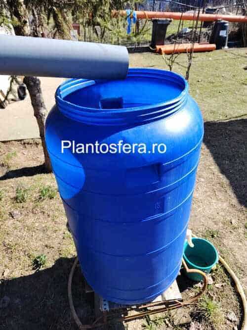 • Folosește butoaie de plastic alimentar (cele albastre sunt clasice) sau bazine tip IBC.