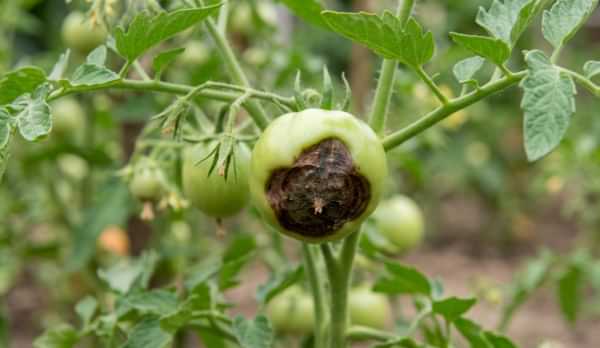 Putregaiul apical la roșii, cunoscut sub numele de lipsă de calciu, se manifestă prin apariția unor zone gri-închis pe tomate. Acestea par ca și cum ar putrezi de jos în sus.